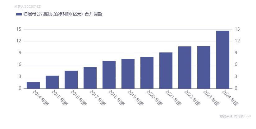 2014年至2024年,欣旺达营收一路从42.79亿元增长至560.21亿元。